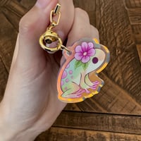 🪷The charm is made from rainbow acrylic to have a multi-color sheen, and is 1.5" tall with the design printed on both sides.